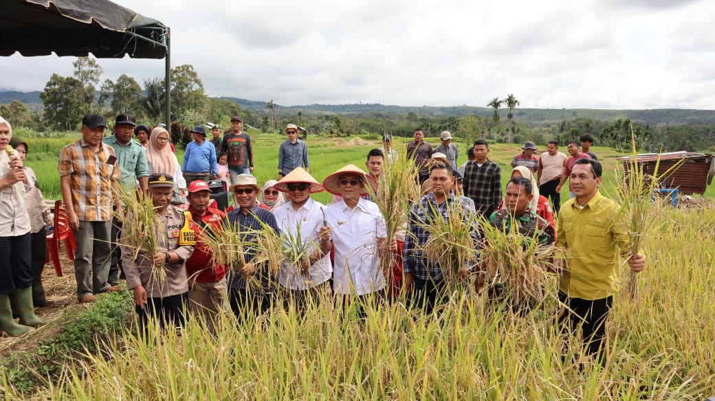 Bupati Tapsel melaksanakan panen dari area persawahan milik anggota Kelompok Tani (Poktan) Saba Dano Godang di Desa Pargarutan Julu. Turut hadir dalam kegiatan ini Wakil Ketua DPRD Tapsel Abdul Basith Dalimunthe, Sekda Sofyan Adil, perwakilan Forkopimda, Bulog, BPS, pimpinan OPD, dan Koordinator Balai Penyuluh Pertanian.